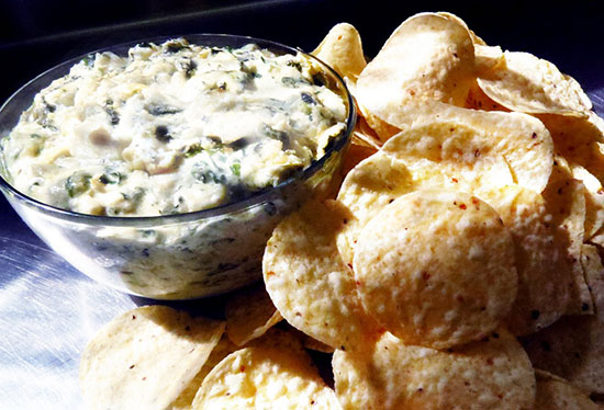 Artichokes, spinach and a premium three cheese blend are combined to create a rich, cheesy dip. Served with tortilla chips. Feeds approximately 10-15 people.
